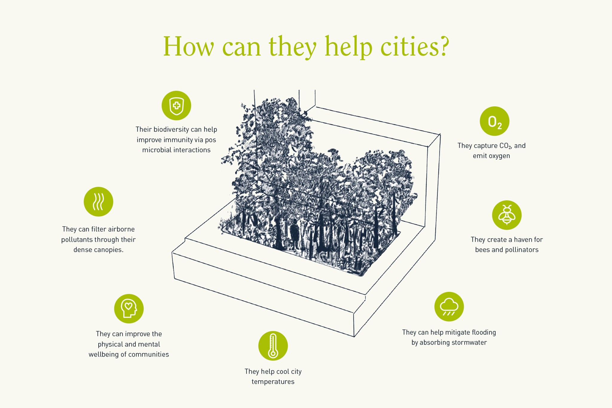 Our pocket forests address multiple urban challenges, including biodiversity loss, air pollution, heat island effect, flooding, community wellbeing, and aesthetics.
