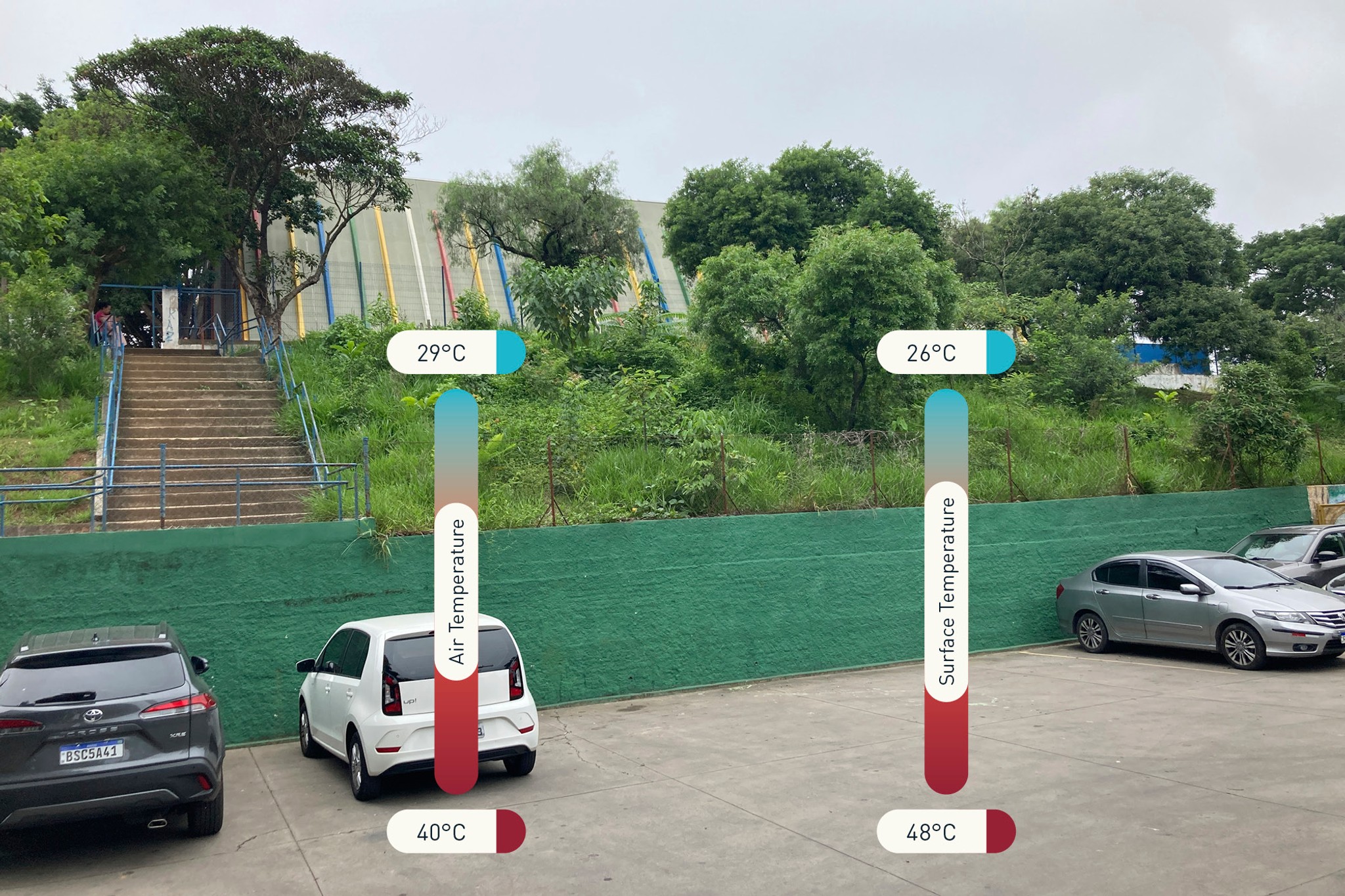 The Urban Heat Island Effect is affecting cities more and more each year and temperetures in urban areas can go up to 12 degrees hotter. This can be reduced and prevented by planting urban forests like this. We collected the air temperatures on a hot day in March at Capão Redondo Forest and saw amazing results.