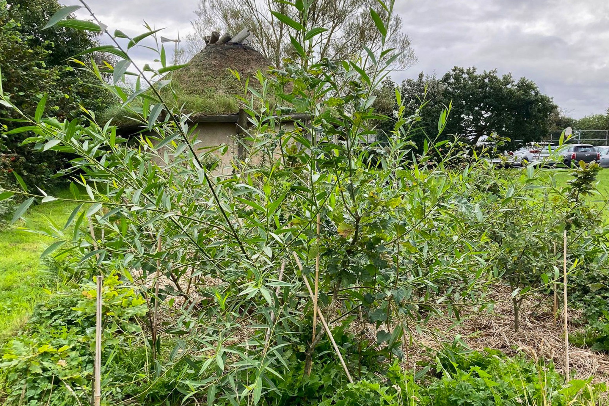 The forest acts directly on its local environment. This area is heavily polluted and an urban biodiversity desert. The denseness of the Miyawaki method allows maximum potential CO2 drawdown and pollution mitigation. The trees chosen are species that have evolved to live and even thrive in the urban environment.