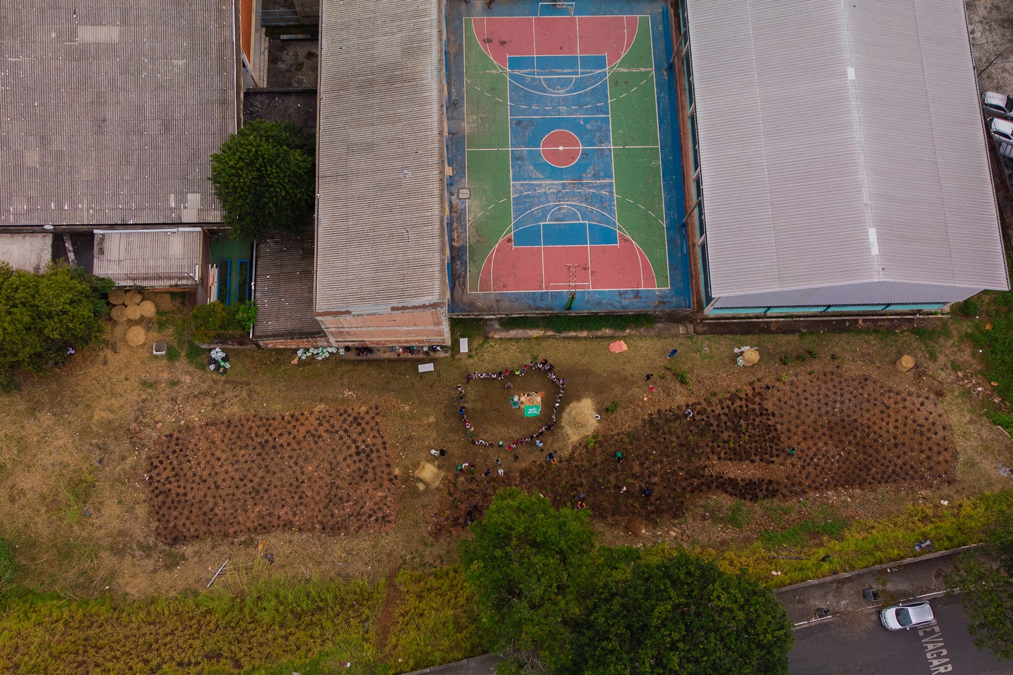 In collaboration with students and the surrounding community, we’re planting over 1,100 native trees - representing more than 100 species, including canela de veado (Helietta appiculata) and jatobá (Hymenaea courbaril). The 550 sq meter forest will be co-created through a hands-on, six-month educational program, where students actively participate in every step of the process - from planting to ecosystem care.